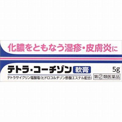 テトラ・コーチゾン軟膏は、抗生物質 テトラサイクリン塩酸塩に、副腎皮質ホルモン剤のヒドロコルチゾン酢酸エステルを配合した軟膏です。
